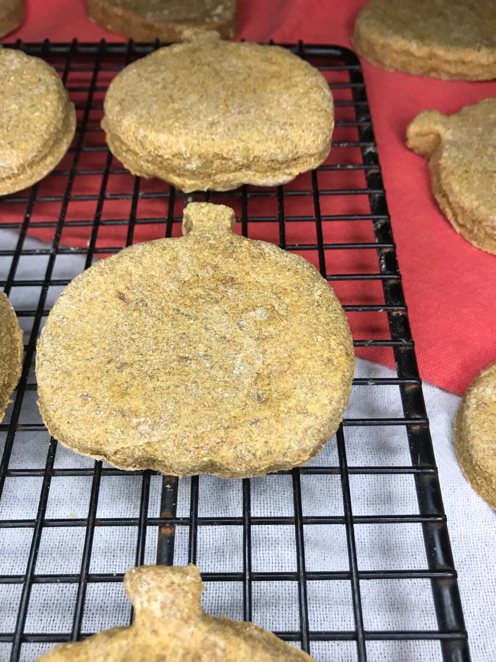 Our pumpkin dog cookies are baked to be crunchy, which can help clean your dog’s teeth 🦷 and provide a satisfying texture. If your dog has difficulty with hard treats, you can soften them by soaking them in a bit of water.