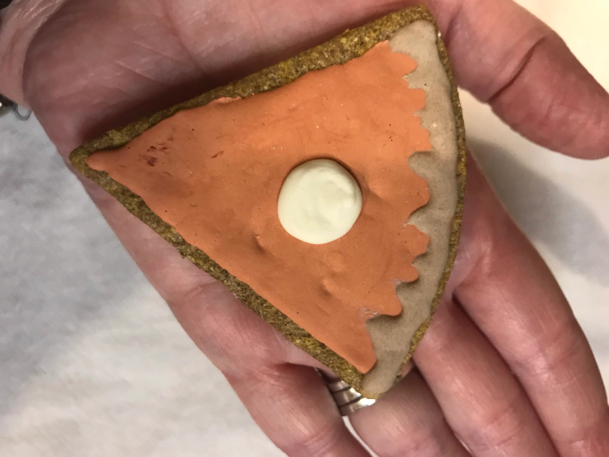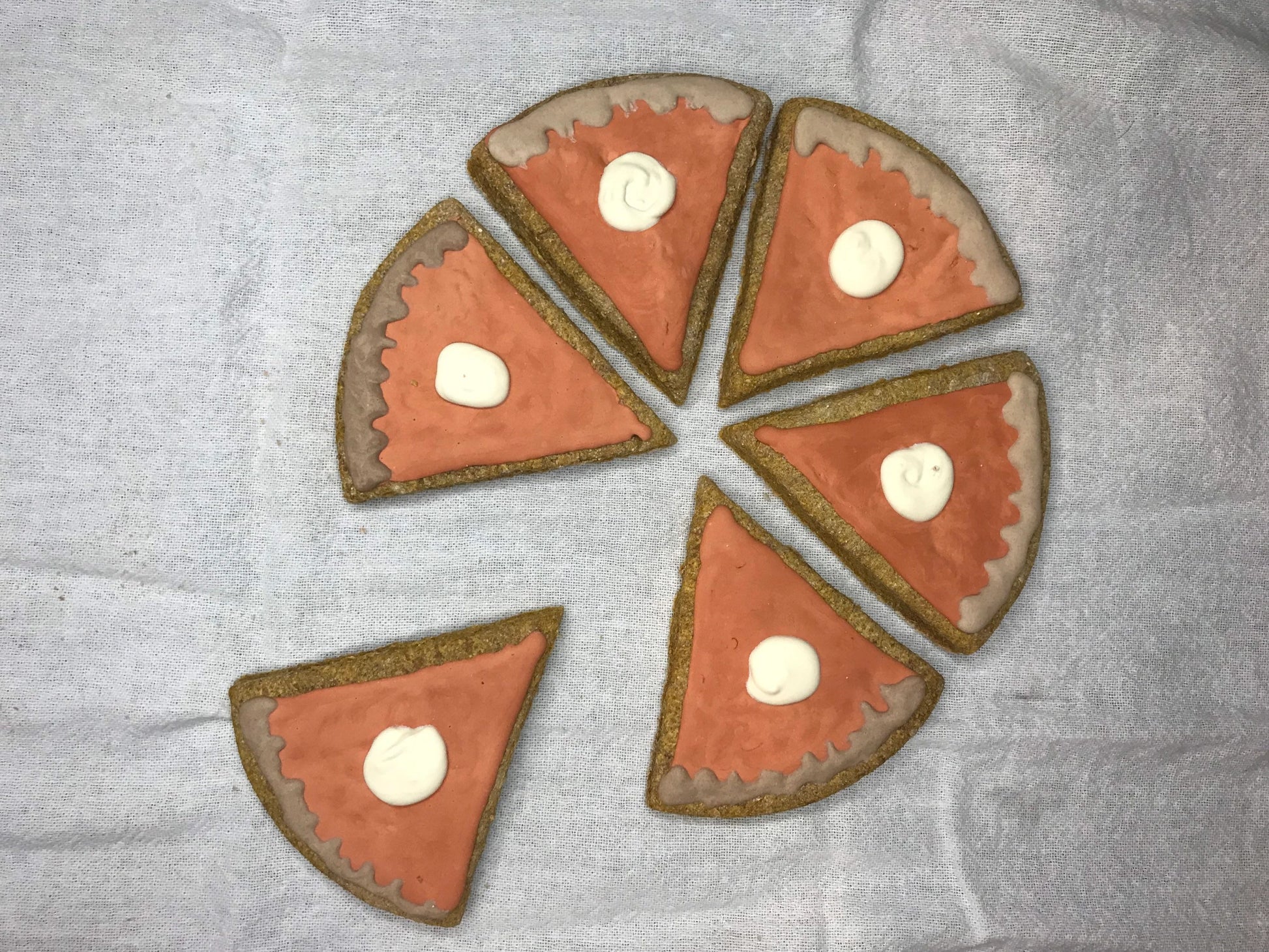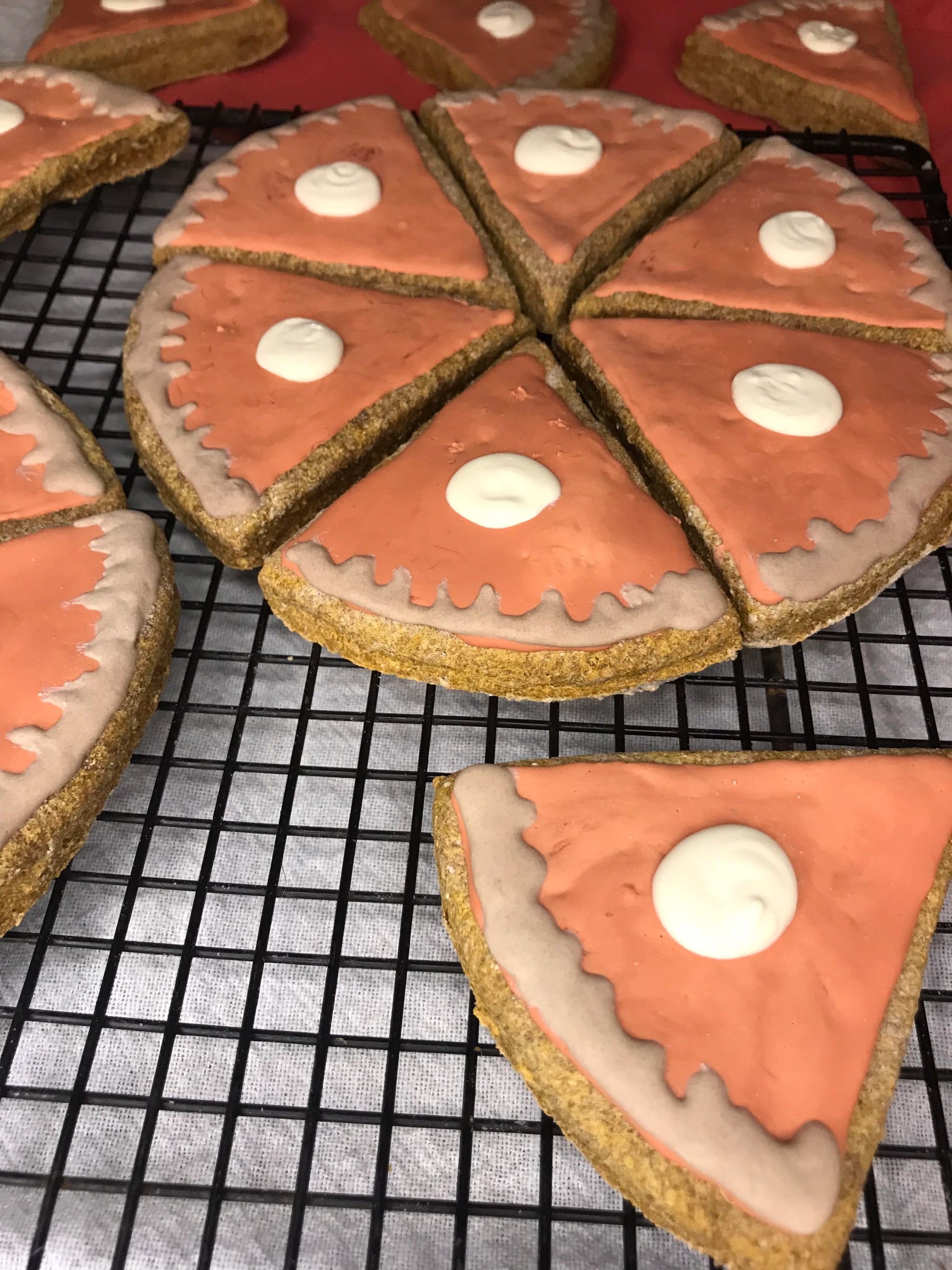Each slice of our pumpkin pie cookie measures approximately 2 x 3 inches. This size is suitable for both small and large dogs. 🐕🐩