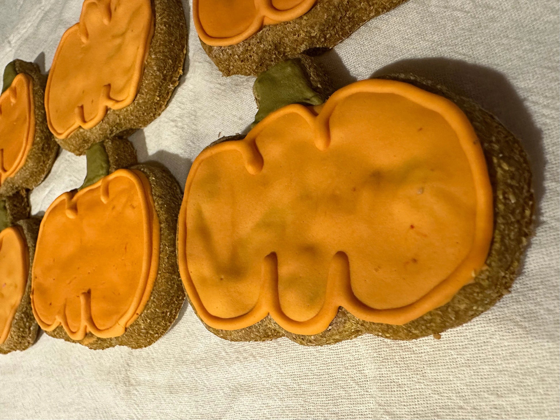 Treat your furry friend to the taste of fall with our Pumpkin Shaped Dog Cookies! 🍂 Made with wholesome ingredients and crafted with love, these treats are perfect for the season. Each cookie is shaped like a pumpkin 🎃 and hand-decorated with dog-safe icing. 🐶💕