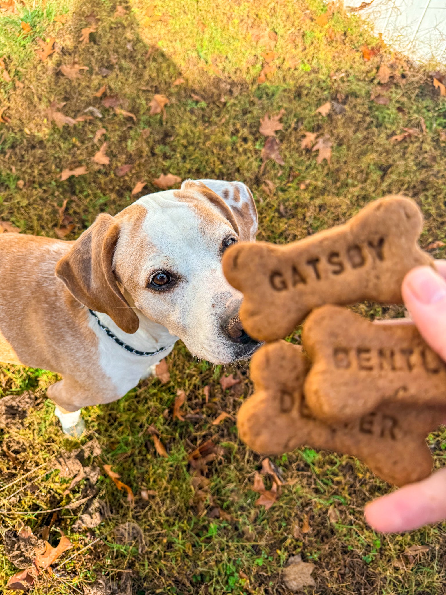 You asked, we listened! Our most popular peanut butter treats are now available personalized—perfect for welcoming a new pup, celebrating a birthday, or gifting at doggie parties.