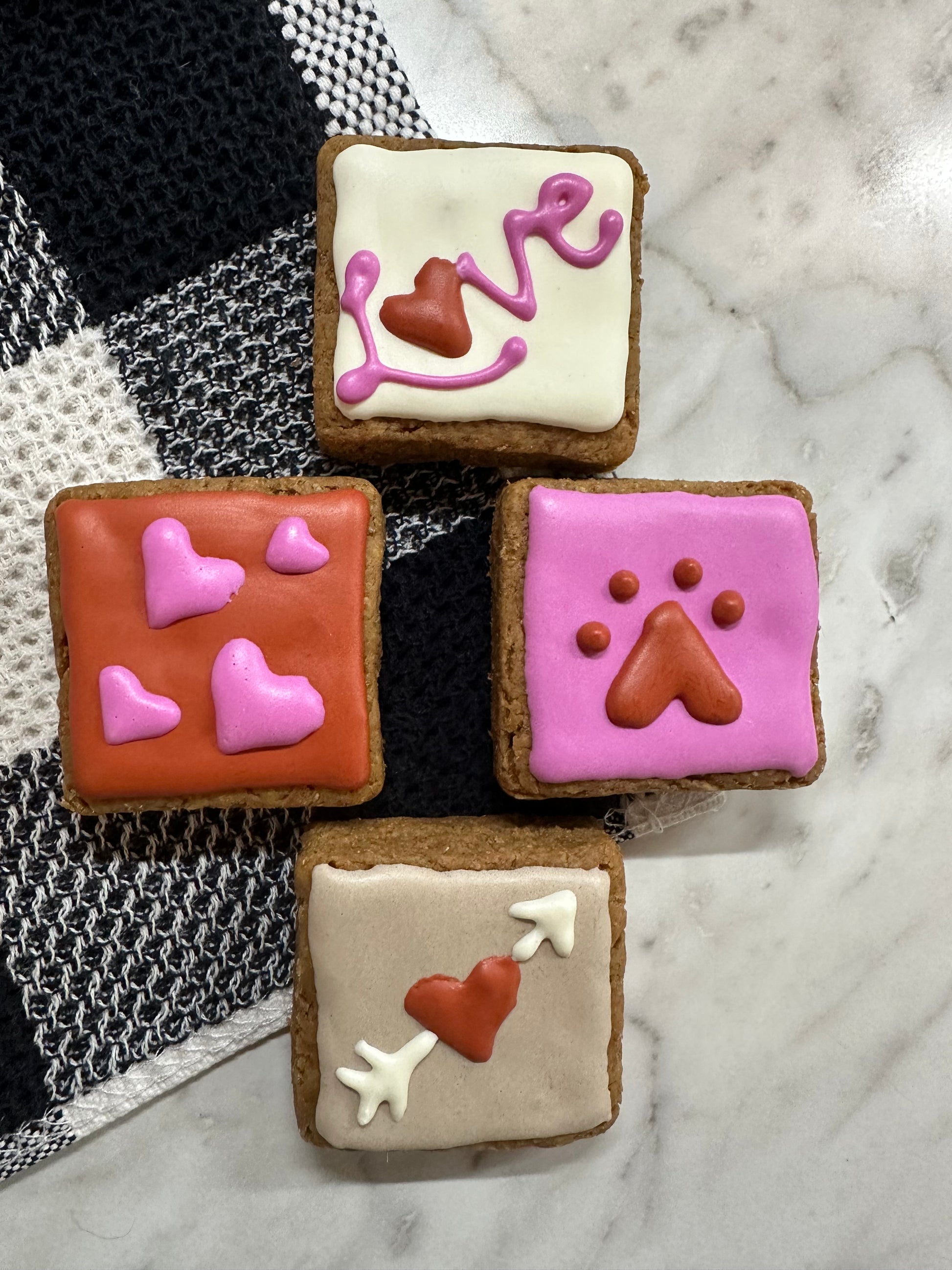 Valentine’s Day Peanut Butter Dog Cookies | Hand-Decorated | Dog-Safe | Love-Baked